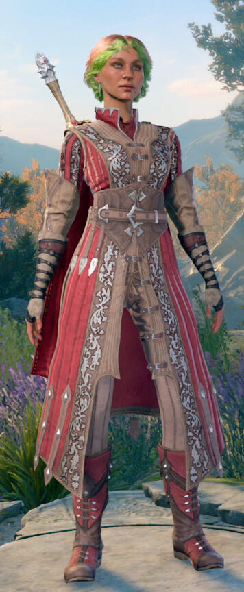 A once-promising artist. A girl from Baldur's Gate who was ever the social butterfly but also infuriatingly stubborn. While she did have friends, she did more often find herself tangled in bad situations and making enemies. Maybe she irritated the wrong person.She should have drowned that day. In a desperate bid for survival, she accepted the whispered offer in her head, an otherworldly presence that extended a chance for her to escape the clutches of the drowning sea. Awakening on a beach, gasping for air, she discovered she had traded one kind of existence for another. She agreed to serve as a proxy for her patron, hunting down individuals in the material plane. This pact bound her to Deity but also gave her access to new powers that would help fulfill her new patron's wishes.She treads the thin line between the will of her patron and her own sense of agency. But she continues to trail after them, knowing that she's living on the time that they provided to her. No longer living in one place and pursuing her love of the arts and painting, the girl became a traveler, under the guidance of Deity.When Solita found herself in this body she was a little irritated, unsure of the new powers that came from this contract that Deity had made with this body. She did settle in and start to enjoy them after a learning curve, and soon settled in a similar routine she does in any world she visits.It was a normal day, or at least, as normal as a day could be in her life while contracted to Deity. In Baldur's Gate making some connections when she was caught on the Nautiloid ship and infected with a tadpole. That threw a wrench in both her and Deity's plans. Despite her inclination to end her life and rid herself of the parasite, Deity forbade such action, as it would sever the pact granting her powers as a warlock. Bound by her patron's decree, Solita faced a precarious predicament, unable to die by her own volition as long as the tadpole remained dormant within her.